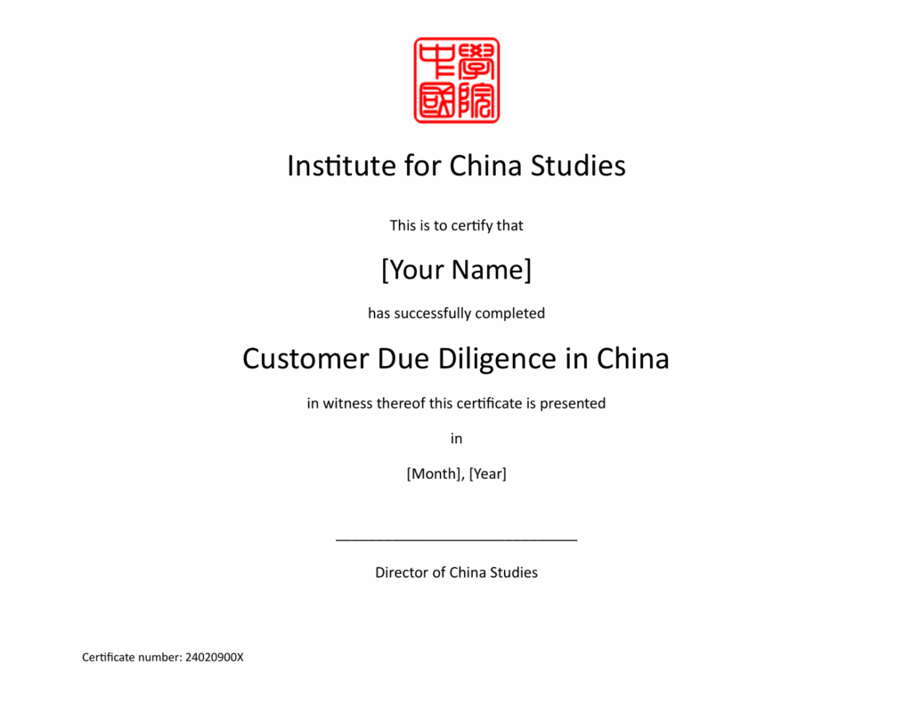 Note: After successful completion of the online program, your verified digital certificate will be emailed to you in the name you used when registering for the program. All certificate images are for illustrative purposes only and may be subject to change at the discretion of the Institute of China Studies.