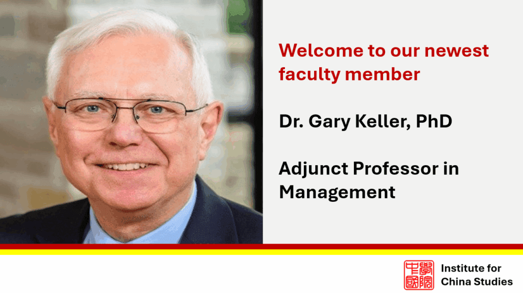 The Institute for China Studies is pleased to welcome Dr. Gary Keller, PhD as faculty member.