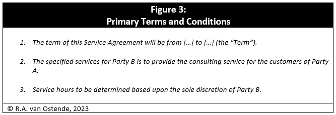 Figure 3 provides sample text included in service agreements regarding the terms and conditions.